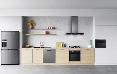 - Coordinated cabinetry and appliances: Built-in black or white appliances, such as Electrolux’s stainless steel ovens, fridges, and induction cooktops, seamlessly integrate with cabinetry for a cohesive, sleek design.