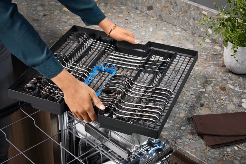 Some automatic dish washing machines come with your typical cutlery basket, where you stand your knives, forks and spoons up vertically, while others come with a horizontal removable 15 setting cutlery drawer. The more flexibility in the design means the greater options you have for stacking and loading, so you don’t have to hand wash a thing.